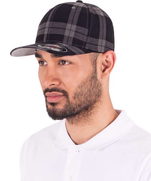 Fashionable plaid fabric. Hard buckram. Silver coloured undervisor.