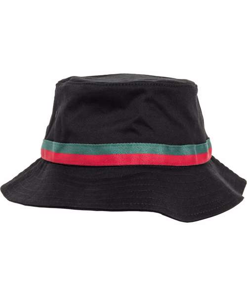 This bucket hat offers you the casual look of a classic fishing hat, enhanced with a circumferential brim, decorative seams and topped with a two-tone hat band in fire red and green. This is how urban style should look today!