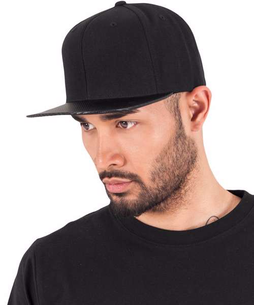 Carbon snapback. Classic shape. Premium wool-blend. Matching plastic snap. Hard buckram. Carbon-style visor.