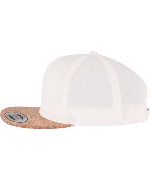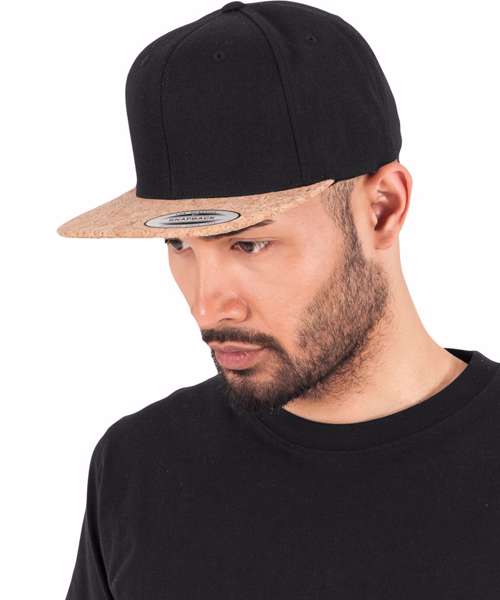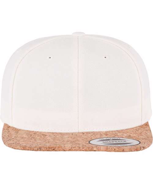 Cork snapback. Classic shape. Premium wool-blend. Matching plastic snap. Hard buckram. Cork visor.