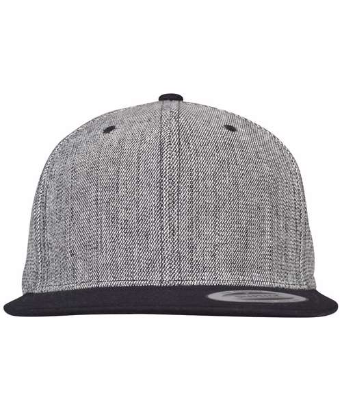Melange solid snapback. Classy cotton twill. Fine melange look. Flat brim in black. Typical snap closure.