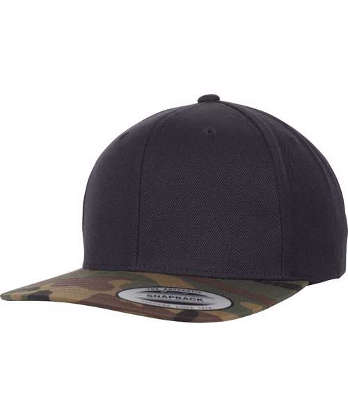 Classic snapback 2-tone camo. Robust wool-twill-blend. Different prints in trendy camouflage colours.