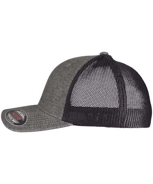 Retro trucker melange cap. Flexfit technology. Trucker mesh and a front made of very soft, slightly brushed fabric. Beautiful melange look.