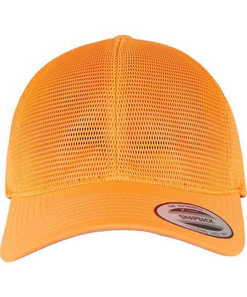 Omnimesh cap with color-matching snapback closure, one size fits all, made of cotton and polyester, breathable material, 8-fold quilted, pre-bent visor.