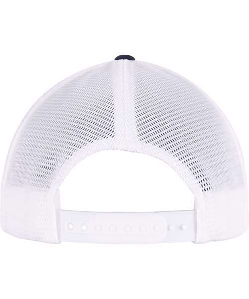 Two-toned mesh cap with color-matching snapback closure, one size fits all, made of cotton and polyester, 8-fold quilted, pre-bent visor, breathable material.